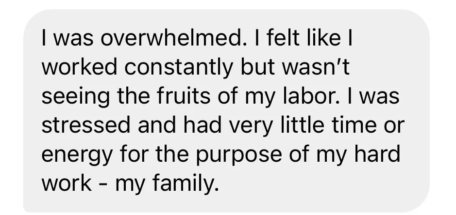 I was burnt out, exhausted, and running in the opposite direction of things I said I valued (like relationships, self-care, or personal growth).